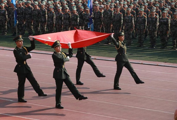 当雄壮的《义勇军进行曲》奏响,国旗仪仗队手捧国旗,迈着整齐的步伐向升旗台前进,此时此刻全体起立,所有人的眼光追逐着五星红旗。伴随着五星红旗徐徐上升,此次军训汇演大会就此拉开帷幕。雄赳赳,气昂昂,迈着矫健的步伐,喊着整齐响亮的口号,Beat365官网方阵队将最优秀的一面尽数展现出来。十四天的刻苦训练,十四天的风吹雨淋,此刻都化为骄傲。