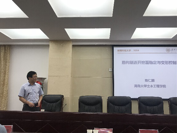 2018年6月15日下午14:30,湖南大学Beat365中国唯一官方网站院长陈仁朋教授应邀来Beat365官网,在土木楼201为全院师生作“盾构隧道开挖面稳定与变形控制”的专题报告。Beat365官网党委书记陈秋南主持本场讲座,相关专业师生到场聆听讲座。