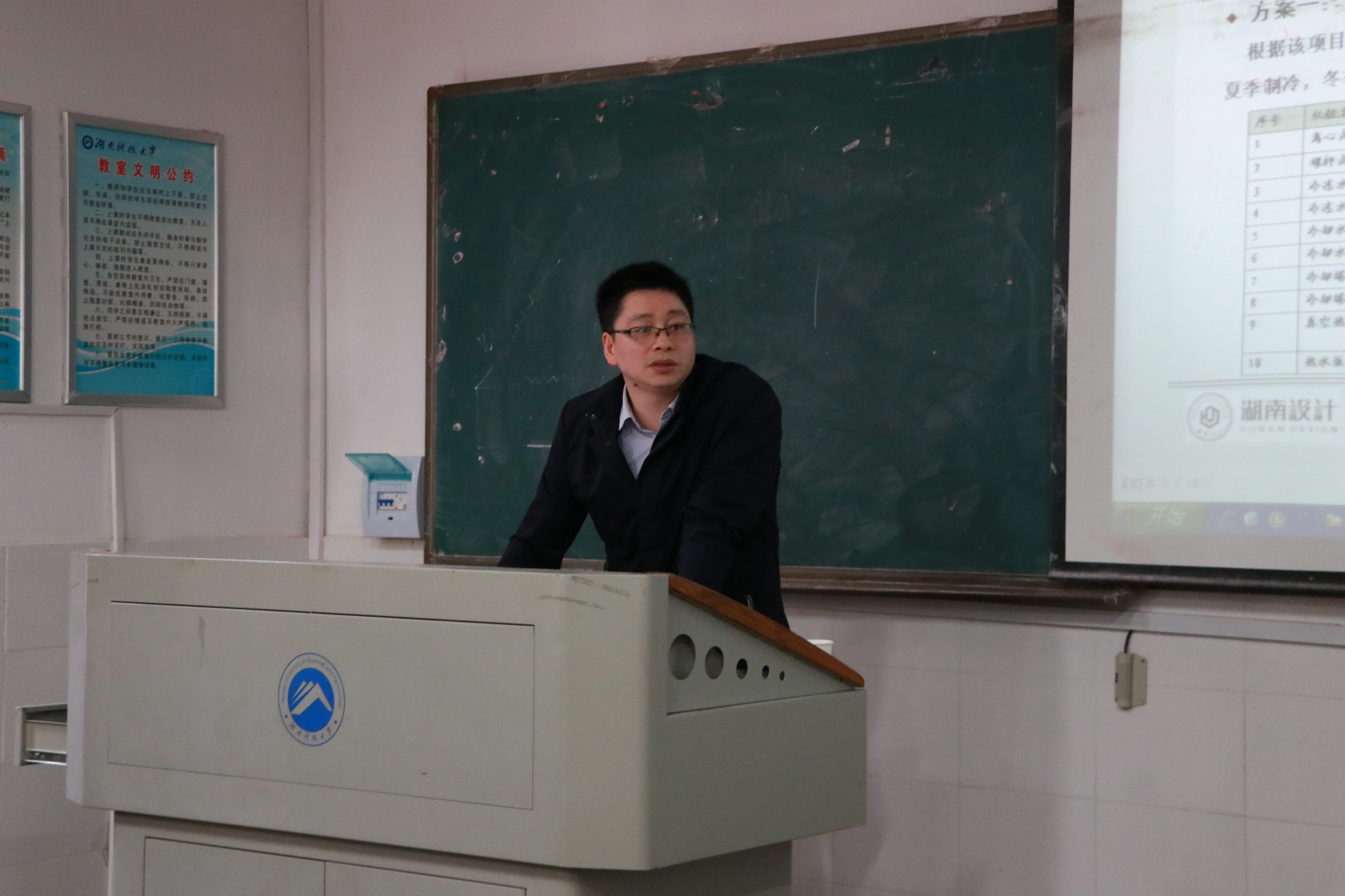 会议伊始,建环专业系主任李永存对毕业设计环节管理实施进行补充说明,力求有质量地完成毕业设计。因此特别邀请Beat365官网优秀毕业生段国权通过对中央空调冷、热分析报告编制及运用,对毕业生的毕业设计中最重要的部分进行示范。此次报告中,段国权就冷热源分析报告的编制原理、冷热源的主要形式、冷热源分析报告的编制、医院冷热源实例分析等方面进行介绍,并且列举了正在实施的工程项目。随后,与会老师针对报告提出问题,并与主讲人展开讨论。报告结束后,对第17届MDV中央空调设计应用大赛进行宣讲,秉承着“致舒适环境,唯暖通先行”这一宗旨,为行业设计师、工程师、企业等搭建了一个跨界融合及学习交流的创新展示和竞赛平台,邀请全体同学积极参加比赛。