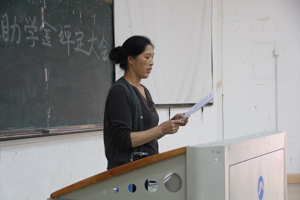 大会伊始,勤工助学部副部长王帅上台讲话。他首先为大家介绍了国家励志奖的评定要求、填表细则以及其他注意事项。然后,他再强调了助学金的有关事宜,交代了评定过程中的重点注意方面。最后,他留下联系方式,为保证各班对评定细则更加了解。随后,杨钋平发表讲话。她公开了国家奖学金的获奖名单,并鼓励大家努力学习,争取拿奖。在讲话中,她反复提到评定过程中的公平公正的重要性。将评奖过程的事例与同学们分享,以保证评奖的透明性。大会最后,勤工部部长刘立再次强调了会议内容重点,嘱咐各班团将会议内容告知班级同学。
