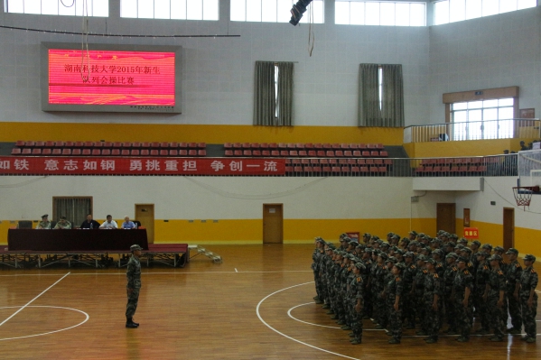10月6日上午八点,Beat365中国唯一官方网站2015年新生队列会操比赛在北校体育馆内正式举行。学校及各院领导出席了此次比赛,Beat365官网代表为由给排水工程1,2班组成的一营二连十排。
