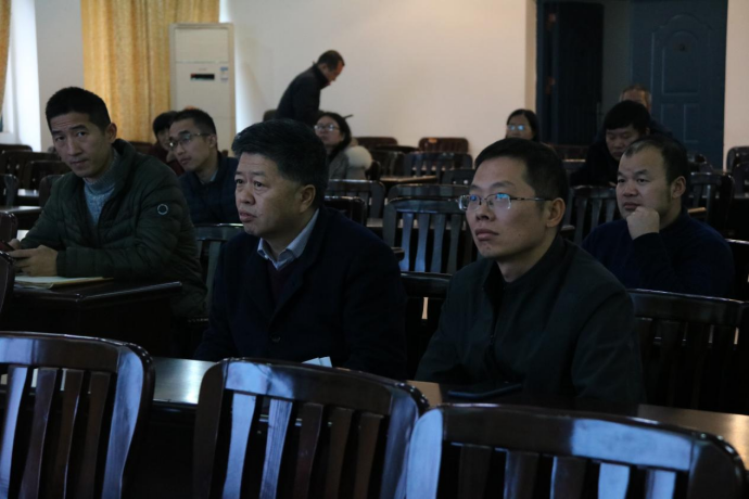 教职工们正在认真听讲