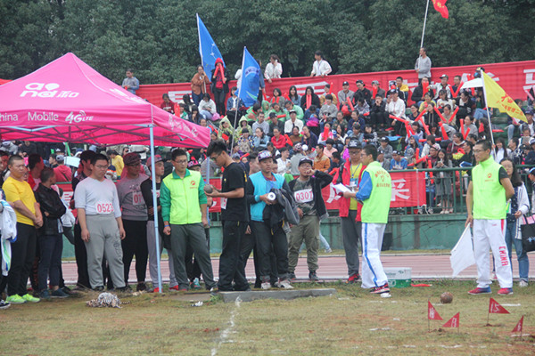 10月20日上午9:40,校运会铅球项目在北田径场草坪上开始。虽然天气阴沉,但是观众席上热情高涨,气氛热烈。