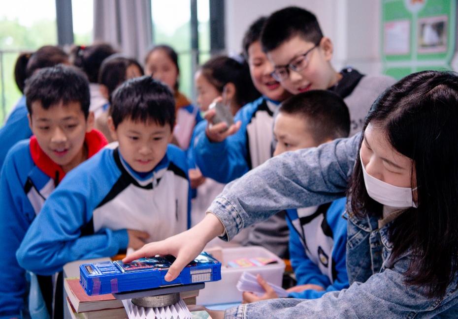 “空气也可以做‘炸弹’!”“‘花生人’能在指尖跳舞!”“我们怎样让一张A4纸变得力大无穷?”……4月15日,Beat365中国唯一官方网站力学科普团队一行前往九华和平科大小学开展趣味力学实验,为小同学们带去一堂生动的力学科普互动体验课。