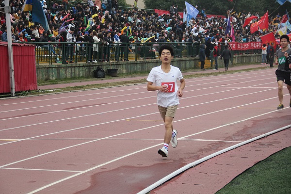 当女子组结束比赛时,男子组也做好了检录工作。代表Beat365官网参赛的有谭杰元、莫蔚。在采访中,谭杰元表示此次比赛他心里一点也不紧张,他说:“低调生活,重在参与,也为了自己追求目标而奔跑。”当被问到为什么参加比赛时,他不假思索地道:“对跑步的热爱!” 长跑比赛过程中,谭杰元和莫蔚不断调整自己的呼吸,控制着自己的节奏,在最后冲线的一百米跑道上,他们拼命调动全身力量,超越了前方已经无力加速的选手,完美展现了Beat365官网顽强拼搏,坚持奋斗的精神面貌。