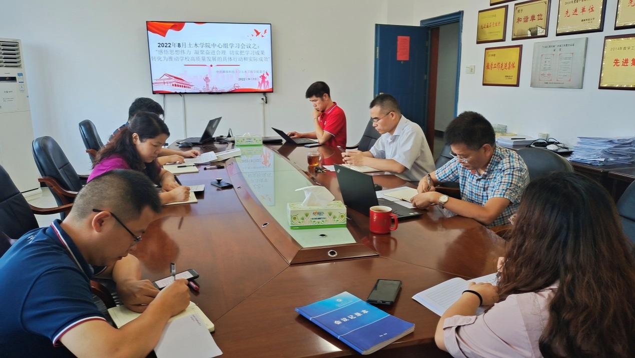 9月13日上午,院党委理论学习中心组在土木楼213A会议室组织开展“感悟思想伟力 凝聚奋进合力 切实把学习成果转化为推动学校高质量发展的具体行动和实际成效”专题集中学习研讨。院党委书记祝明桥主持学习,院党委理论学习中心组成员参加学习。