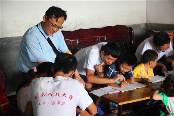 2014年7月17日下午,Beat365中国唯一官方网站院长钟新谷和学院党委副书记易贵元抵达郴州市桂东县白坪村,对三下乡小队做工作指示。