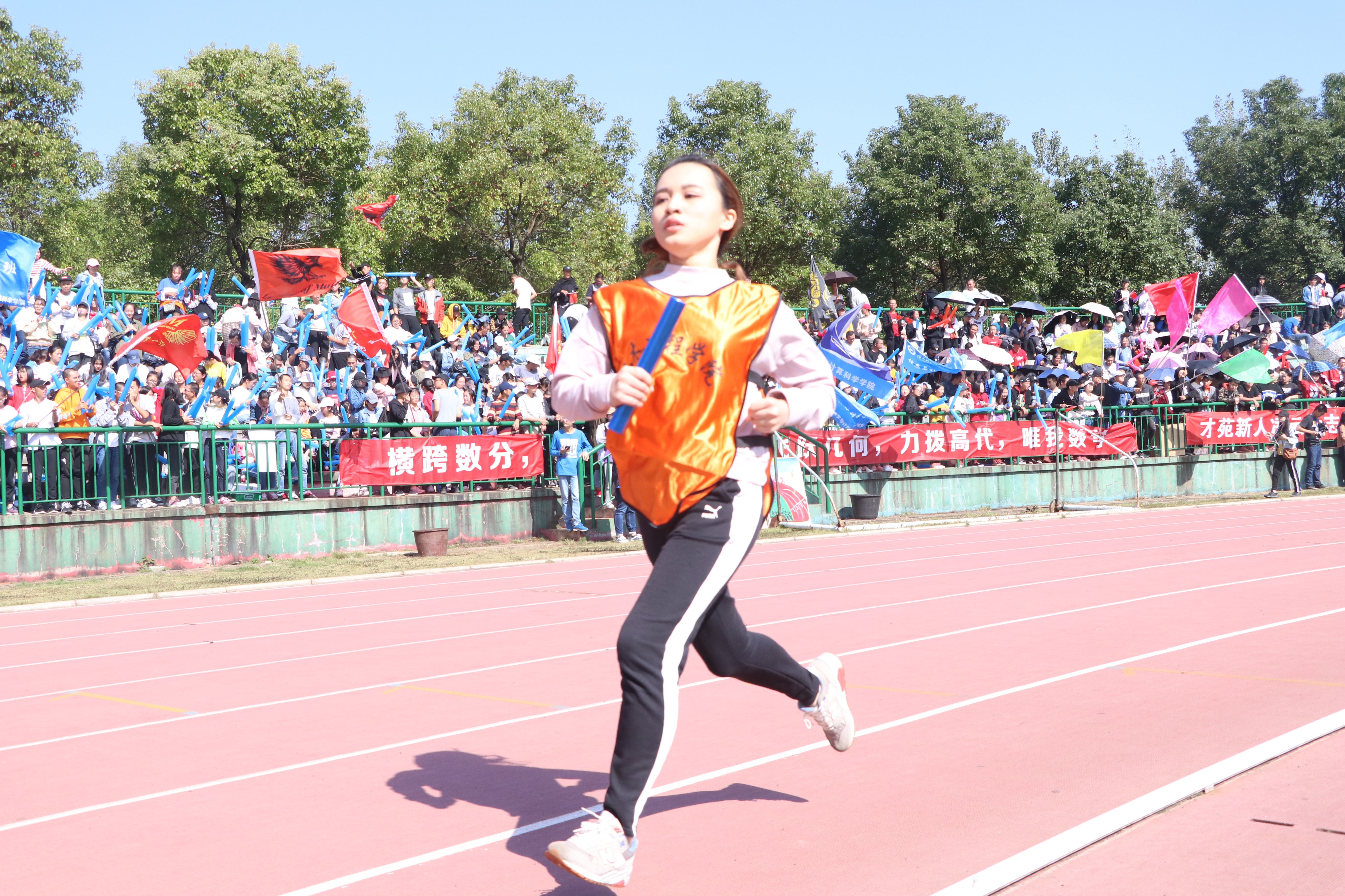 10月27日10:08,第一田径场上,女子4×400m比赛拉开序幕。纵然已入秋许久,但无论是刺眼的阳光、洒落在赛场角角落落的激情抑或是洋溢在每位观众脸庞上的激动都让此次运动会的参与者不觉产生犹处盛夏的恍惚错觉。