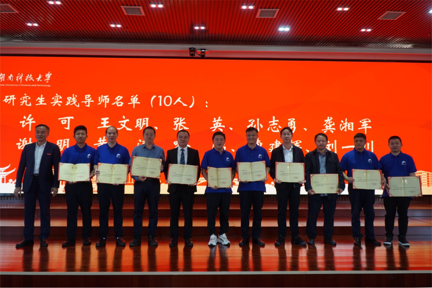 会上,廖湘岳代表学校为10位硕士研究生实践导师颁发了校外实践导师聘书。