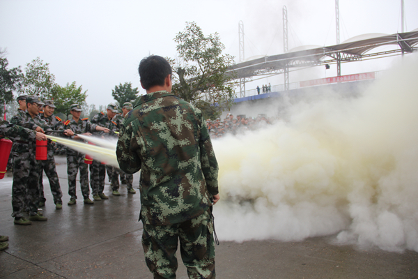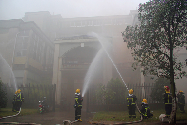 为了进一步提高新生的消防意识,普及消防知识,本着坚持“安全第一,预防为主”的方针和“以人为本”的思想,我校于10月6日下午成功在外语楼旁举办2015级新生消防安全疏散演练。全校所有军训新生在外语楼旁集合,观看消防演习。演练由学校武装部、保卫处联合湘潭市公安消防支队举办。