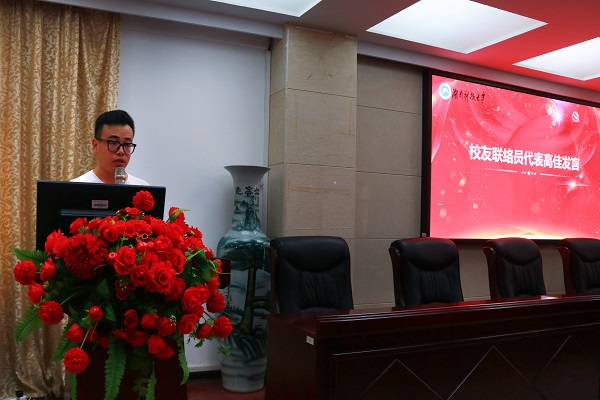 会议由肖鹏飞主持。首先,刘星宣读《关于2022届毕业生校友联络员的聘任决定》。他指出校友联系员是经过自愿报名、学院推荐、学校审批而选拔出来的优秀代表,学院殷切盼望联络员们认真履行职责,充分发挥桥梁纽带作用,为学院和学校的校友工作,为促进母校和校友的发展做出自己的贡献。接着,曾淑艳宣读《校友联络员工作职责》,她向校友联络员详细说明他们的职责:接受学院的指导,主动和本班同学联络,整理和收集校友信息,及时向学院汇报校友动态。积极组织班级同学参加学校校庆日、校友访校日等活动,接受传达母校的信息。广纳校友对学校和学院建设发展的意见并反馈给学院。曾淑艳强调联络员的工作贵在坚持,要让毕业校友感受到母校永远是温暖的港湾。然后,校友联络员代表高佳发言。他先感谢学院和老师的栽培,承诺为构建起学院和校友之间的桥梁兢兢业业,不负母校重托。