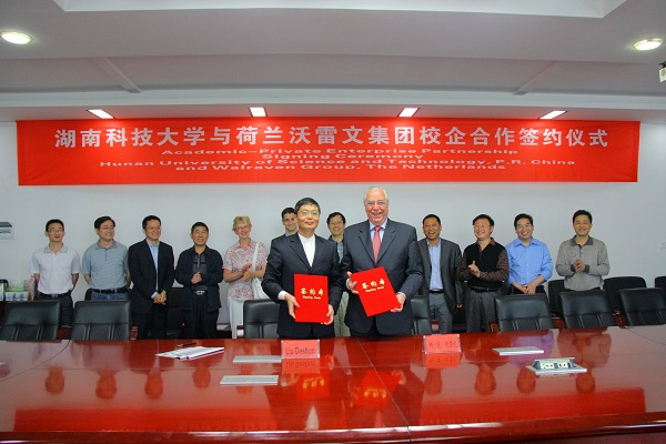 5月10日上午,Beat365中国唯一官方网站与荷兰沃雷文集团校企合作签约仪式在我校第三教学楼301会议室举行。我校校长刘德顺、副校长朱川曲、沃雷文集团杨﹒范﹒沃雷文先生等人参加了合作签约仪式。刘德顺对向沃雷文集团杨﹒范﹒沃雷文先生一行表示热烈欢饮。