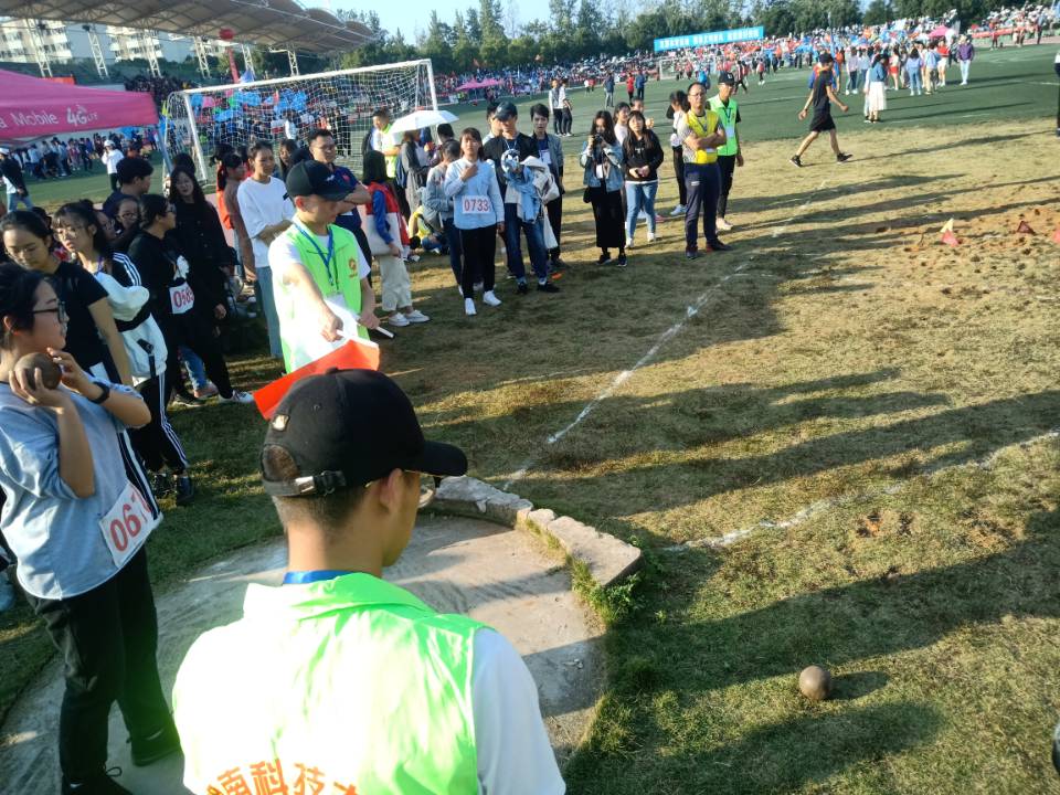 10月26日15:10,激动人心的女子铅球决赛终于开始了,代表Beat365官网参赛的是15级的刘丽萍同学。刘丽萍在去年的运动会上成绩并不是很理想,今年重振旗鼓再次参加了比赛。