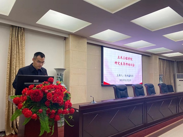 11月23日晚7:30,学院在土木楼201会议室组织召开了研究生导师培训会议。培训旨在为全面贯彻落实全国教育大会和全国研究生教育会议精神,认真贯彻执行党的教育方针,落实立德树人根本任务,营造风清气正的育人环境和求真务实的学术氛围,不断提高Beat365官网学位与研究生教育质量。参加本次培训的人员有全体院领导、土木工程学科全体研究生导师、院行政办全体成员、研究生秘书、研究生辅导员、今年新申报硕士生导师资格的全体老师。会议由学院院长孙洪鑫教授主持。