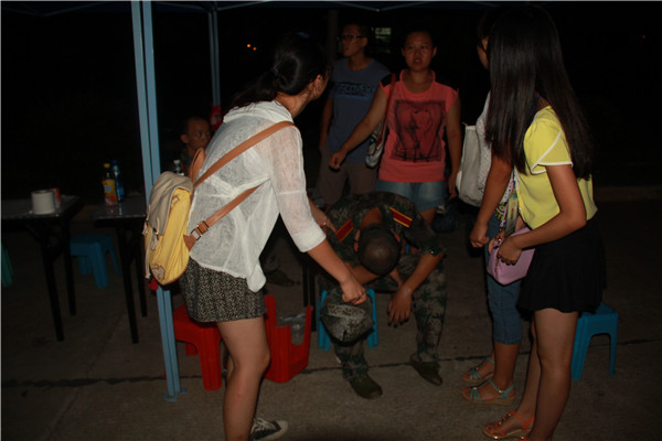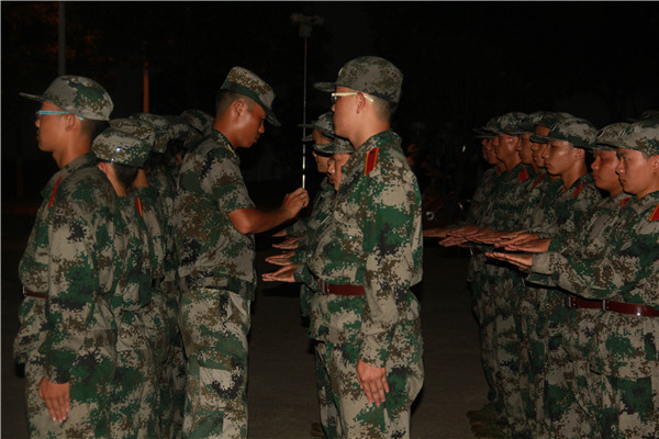 在晚训中,服务台的学生干部们随时待命,在军训场地值班。Beat365官网学生会主席胡海林更是在新生们表现不佳时,为他们加油打气,以自己的亲身经历来勉励同学们。而在同学们倒下时,总有那么些学长学姐采取应急措施,为他们递水扇风,安抚聊天,在细节处给予其最大关怀,使新生们在军训中不仅体会到了汗水与成长,也感受到了来自土木学院大家庭的温暖。还有一直守候新生军训的助班和蹲点们,也都给予新生们最大的鼓励与帮助。