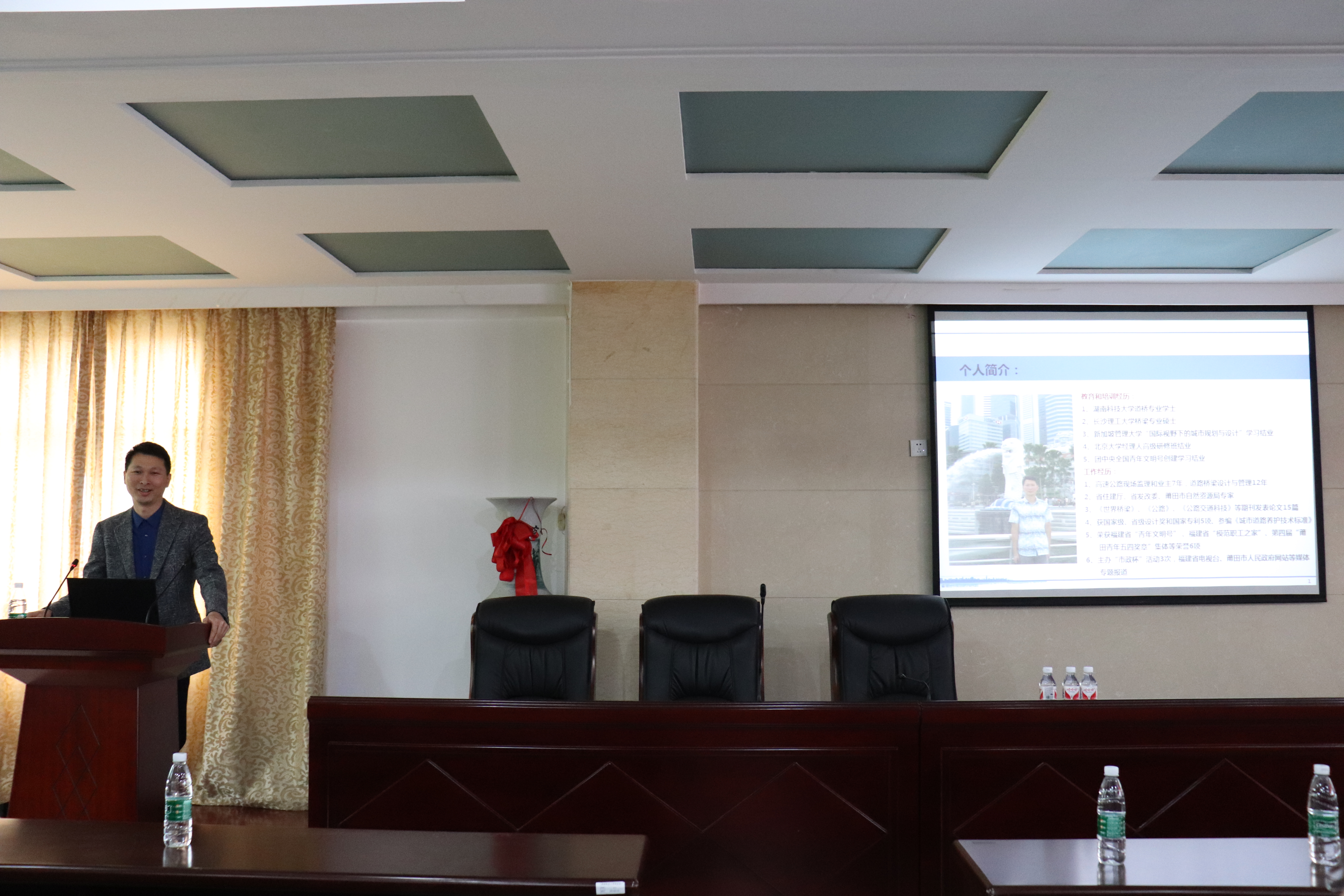 4月13日9:00,第156期土木学术讲坛在土木楼201顺利召开。主讲人为高级工程师、客座副教授、硕士研究生导师,现任福州市规划勘测设计研究总院莆田分院院长蔡纪锋。副院长汪建群,教授王齐仁,副教授沈明燕,工学博士陈炳初,16级辅导员肖鹏飞及部分15级路桥专业学生参加了此次讲坛。由汪院长主持本次讲坛。